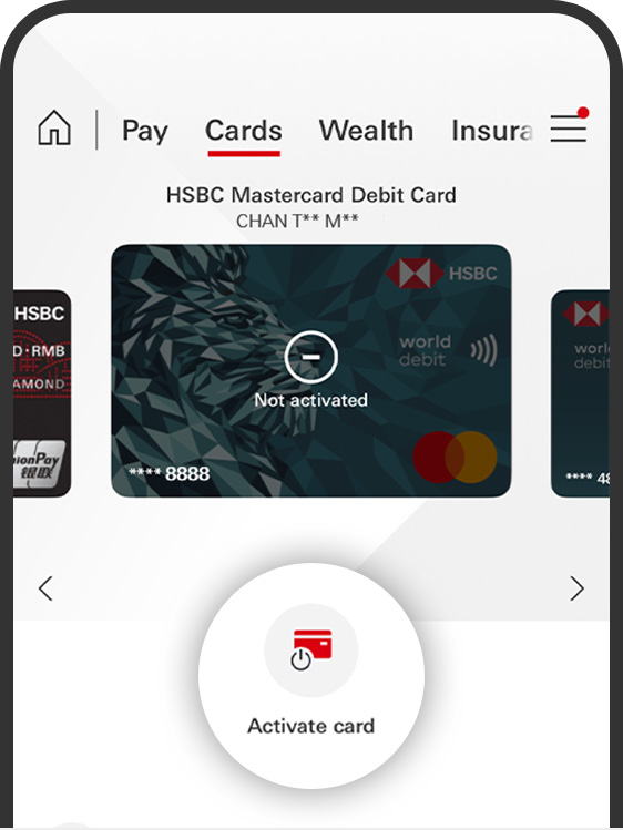 To protect the environment and reduce paper consumption, you will not receive your PIN by mail. After activating your debit card, set up your own card PIN via the HSBC HK App or call our hotline on (852) 3163 0633. It's fast and simple!