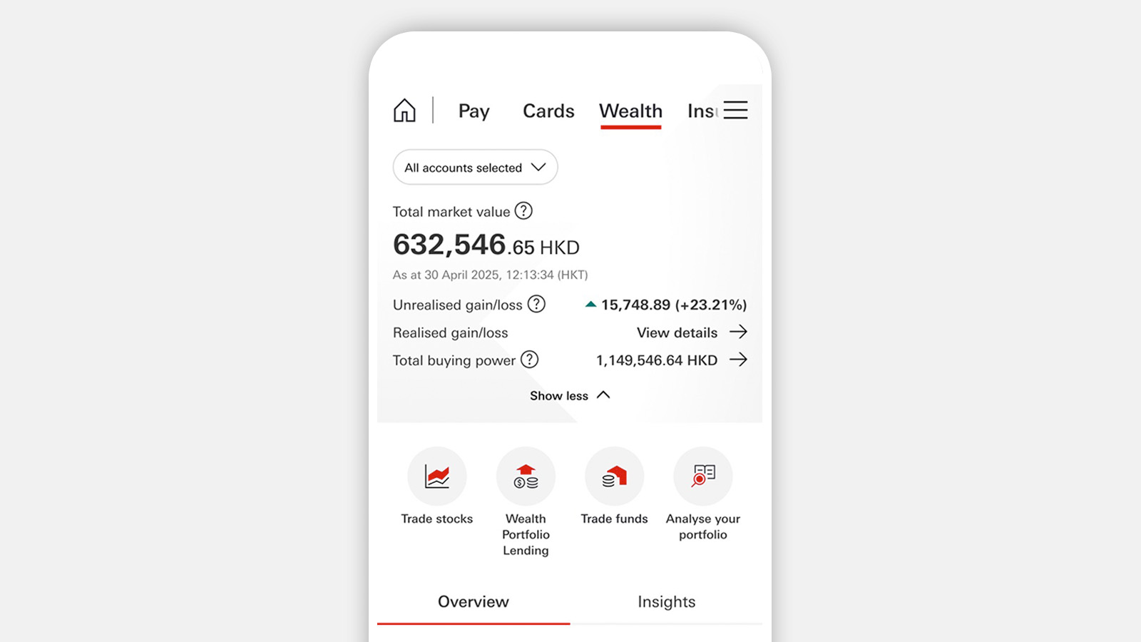- Log on to the HSBC HK App and select the 'Wealth' tab