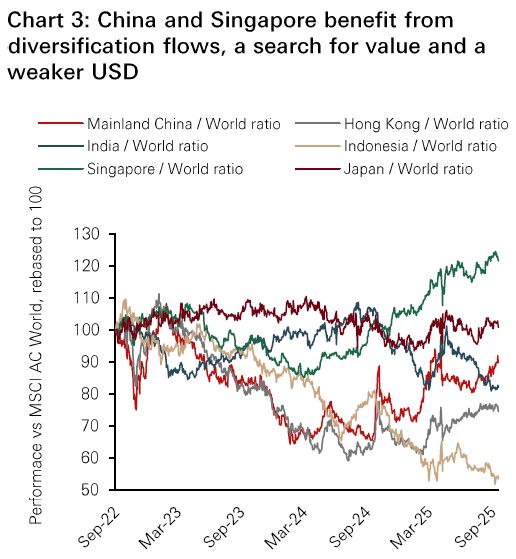 • The re-start of the Fed’s rate cut cycle boosts equities, bonds and gold to new highs. Historically, equities and bonds tend to perform well in the 12 months after the Fed resumes easing. We now expect two more 0.25% rate cuts this year. As the 10-year US Treasury yield is now below our year-end forecast of 4.3%, we reduce our maturity preference for US Treasuries to 5-7 years.