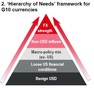 Applying our ‘Hierarchy of Needs’ framework to the G10 currency complex (Chart 2), several currencies are notable. The AUD, NZD, and potentially SEK are well positioned, benefiting from improved fiscal outlooks, recovering domestic growth, and the prospect of tighter monetary policy. These factors collectively enhance their relative attractiveness. However, it is important to note that risk sentiment is likely to remain a key driver; in a “risk-off” environment, these currencies could come under pressure. In contrast, the USD, EUR, GBP, and JPY currently lack the same combination of supportive factors.