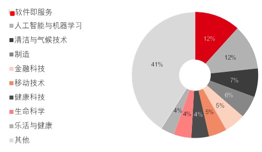 我们对风险投资市场的分析显示:2024 年气候和清洁技术投资占风险投资总额的 5%,为第六大类别,位列科技、媒体和电信、软件即服务及人工智能之后(见图 1)。若以风险投资交易数量衡量,气候和清洁技术则跃升至第三位,占比达 7%。这表明,尽管该领域获得的投资总额相对较低,但在整体风险投资市场中的交易活跃度更高(见图 2)。