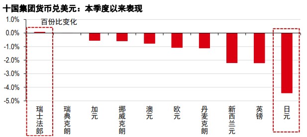 在第四季,瑞士法郎是表现最强的十国集团货币,美元紧随其后。相比之下,同为避险货币的日元表现最弱。这种分化走势引发市场关注:为何同为避险资产却表现迥异以及这一趋势会否延续?