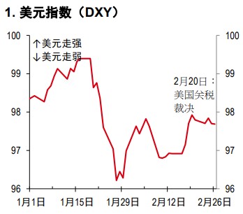 自美国最高法院 2 月 20 日裁定特朗普政府依据《国际紧急经济权力法》(IEEPA)征收的关税非法以来,美元的波动一直相当温和(图 1)。鉴于此前已有迹象显示司法层面的质疑,这一结果已在市场普遍预料之中。不过,美国政策不确定性持续存在,特别是特朗普总统最近宣布的全球关税,若出现重大贸易动态,这可能令美元承压,并引发市场波动。尽管如此,负面情绪可能不会像去年“解放日”之后那么强烈。