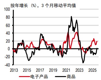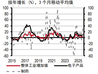 细分数据显示增长预测上调主要源自制造业,其季调后按季增长超过 11%。其中,电子行业显著带动了工业增加值的增长。这反映了科技驱动型经济体的趋势,即人工智能驱动的需求以及贸易前置效应共同推动了经济增长。