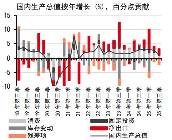 鉴于 2025 年第三季增速大幅超出预期,我们近期将 2025 年国内生产总值增长预测从 2.8%上调至 4.1%。这使我们的预测略高于政府约 4%的预测,而政府此前的预测为 1.5%-2.5%。我们还将 2026 年增长预测从 1.7%上调至 2.0%。这使我们的预测处于政府 1%-3%预测区间的中点。