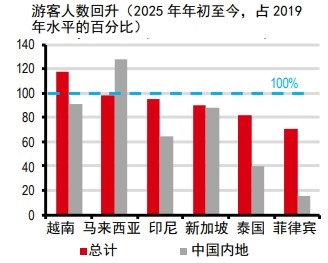 马来西亚社会消费品零售总额的另一个利好因素是其蓬勃发展的旅游业。马来西亚的旅游业全面复苏至 2019 年的水平,仅次于越南。特别是在吸引中国游客方面,马来西亚领先于该地区的其他经济体,中国游客人数已超过 2019 年水平的 20%。这在很大程度上得益于与中国实施的免签政策。