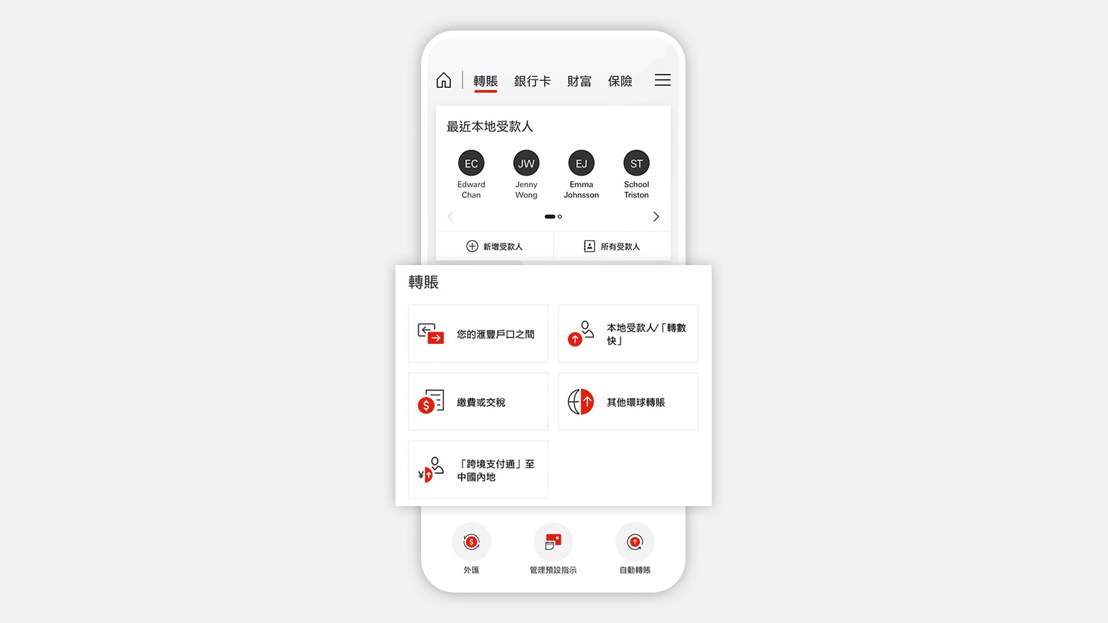「轉賬」頁面經全新設計,讓您更容易找到所需功能,省時省工夫。