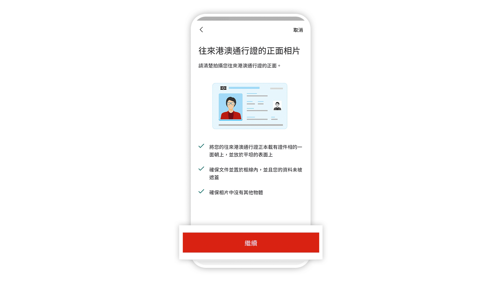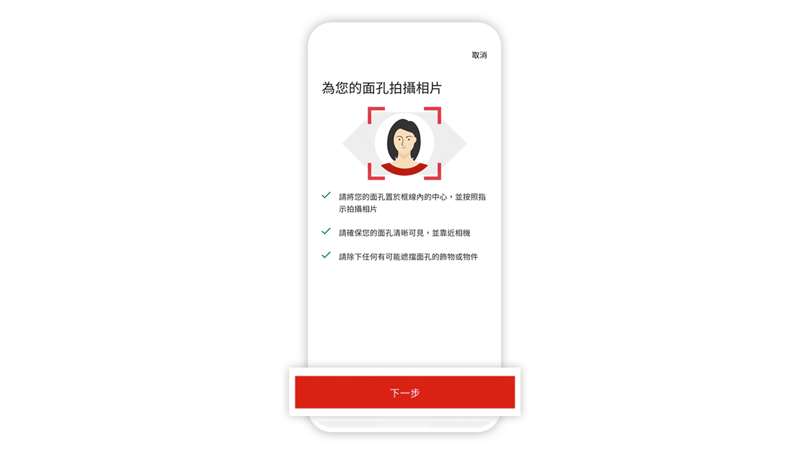 只需使用有效且適用的香港身份證/護照 / 往來港澳通行證及自拍照登記一次,即可開始使用HSBC HK App。您可按照以下貼士,輕鬆完成拍攝。