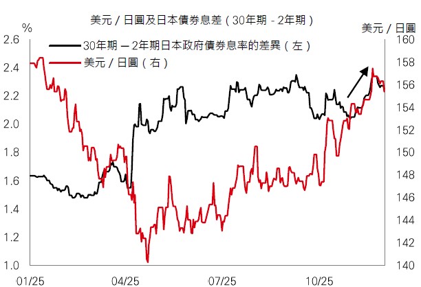 在新任首相高市早苗領導下,日本政府近期通過大規模財政刺激方案(估計佔GDP約3%)。現時新領導層顯然準備好動用更積極的財政政策支持增長。但由於日本的債務水平本來已高企,此舉推高了長期債券息率,同時為日圓帶來下行壓力,使日本央行陷入困境。日本央行自2024年3月開始推行政策正常化以來一直態度審慎,現時央行日益受壓,需要加快提高政策利率,當局甚至可能需採取其他措施支持日圓。