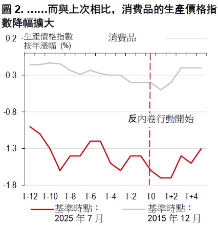 中國反內卷行動於2025 年7 月高調啟動,旨在遏制激烈的「逐底競爭」價格戰,支持各行業實現可持續發展。這一舉措最初取得了一定效果,自10 月起,生產價格指數環比漲幅轉正,主要受鋁、銅和焦煤等少數行業帶動。